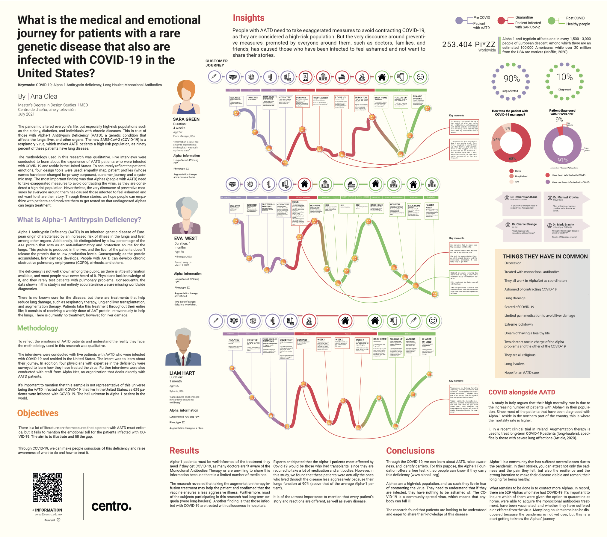 Ana used design study methods such as empathy map, journey map, use of systems thinking, patient profiles, stakeholder map, and journey map to represent the narratives of these patients.