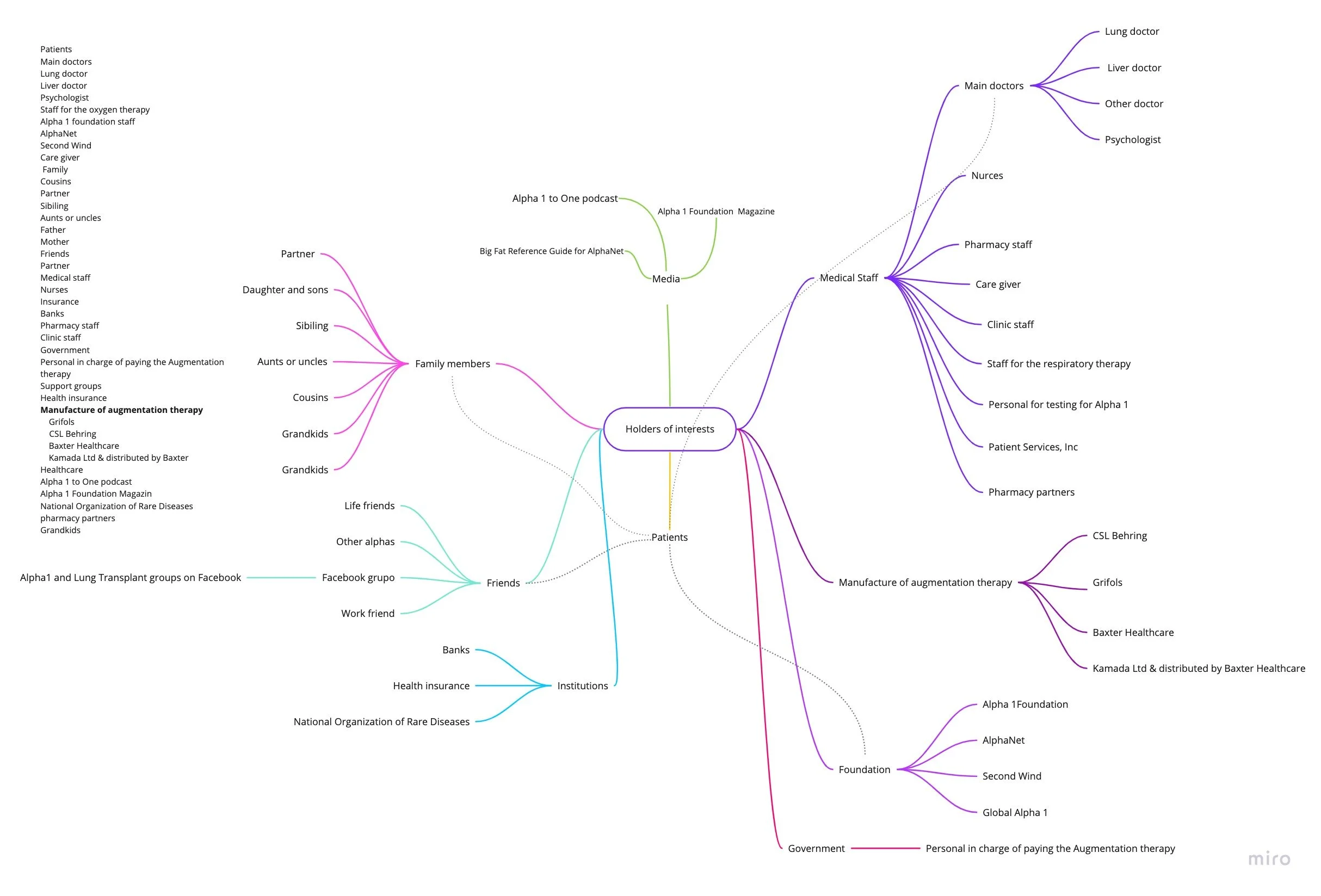 The stakeholder map and the systemic map served to understand better the situation and problems of the Alphas about COVID-19. The first helped to detect the actors in the system and the relationships between them; it was seen that many entities are part of the world of the Alphas and that each one has an important role to play. The second helped visualize the problem from a cellular scale to one of the individuals to the social; that is, the protein system was graphed and how the lack of protein affects the liver and the lungs. Hence, how the deficiency affects the patient's life in a pandemic context because they are extremely isolated, prone to third-party investment, and afraid of death and of leaving their home; these were the result of the interviews.